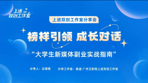 欢迎观看上进双创工作室直播分享会回放~ 本期主题是:大学生新媒体副业实战指南 主讲
